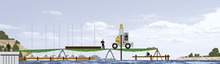 möglichkeiten des Verkaufsschlagers Crocodile, einer Gliederbrücke, darstellen, zum anderen die Amphibie ARAS, von der nur Konstruktionszeich-
